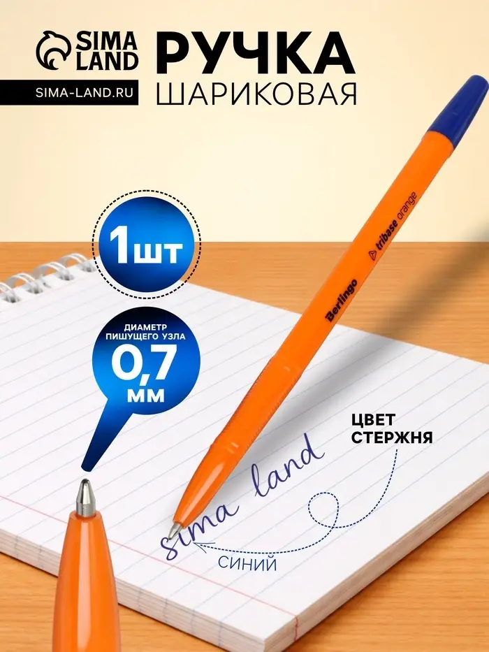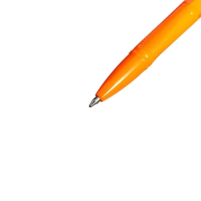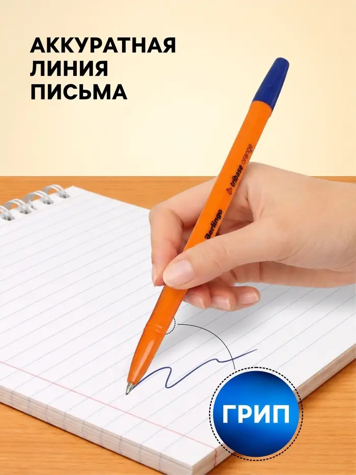 Шариковая ручка подойдёт тем, кто предпочитает яркий, заметный корпус и спокойную синюю линию письма. Оранжевый цвет делает ручку легко различимой на рабочем столе или в пенале, а форма корпуса помогает удерживать стабильный ритм записи. Линия получается ровной и предсказуемой — такой формат особенно удобен при длительных конспектах, рабочих заметках и внимательной письменной работе.