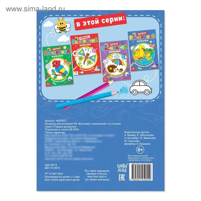 Раскраска для малышей «Большой и маленький» со стихами, А5