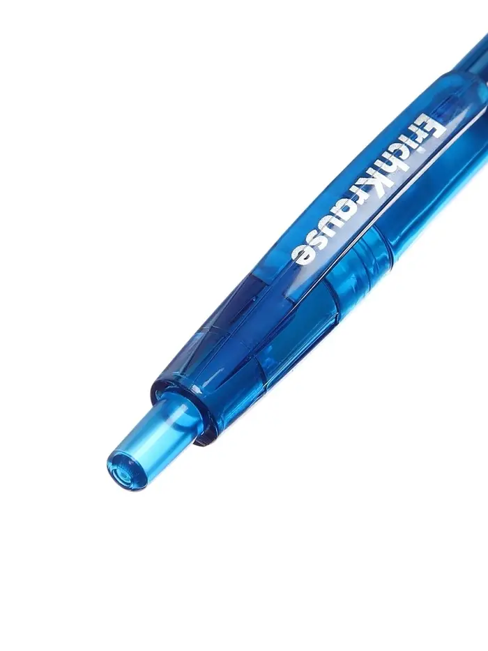 - Пишет яркими синими гелевыми чернилами стандартного оттенка.