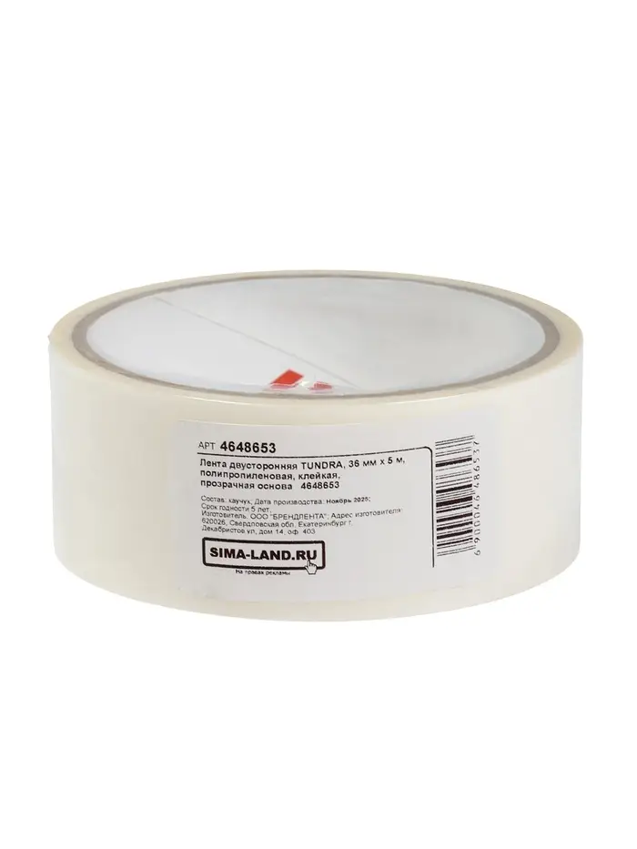 Лента двусторонняя ТУНДРА, полипропиленовая, прозрачная основа, 90 мкм, 36 мм × 5 м
