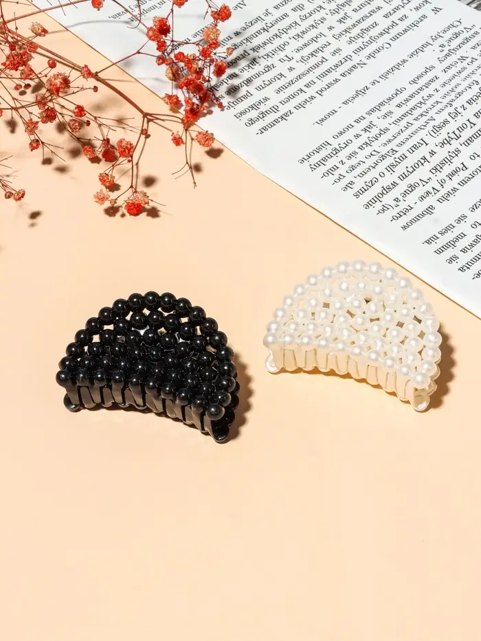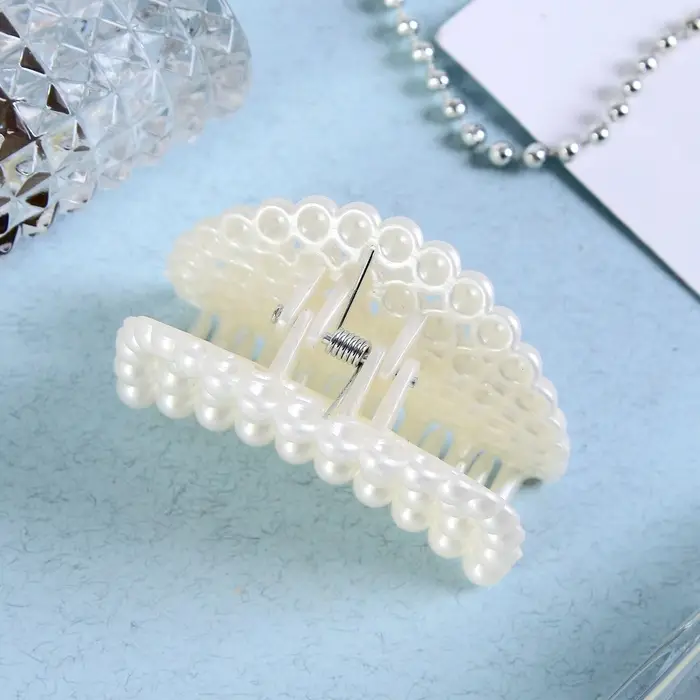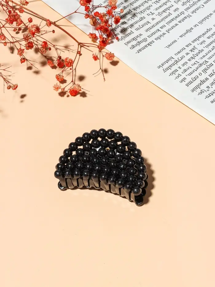 Универсальность в деталях: Пластиковый зажим не боится влаги и не выцветает со временем. Его гладкая внутренняя поверхность не цепляет волосы. Используйте его для создания повседневных или вечерних укладок — он станет тем завершающим штрихом, который подчеркивает индивидуальность. Зажим «Бусины» — простой способ добавить образу изюминку и собранность.