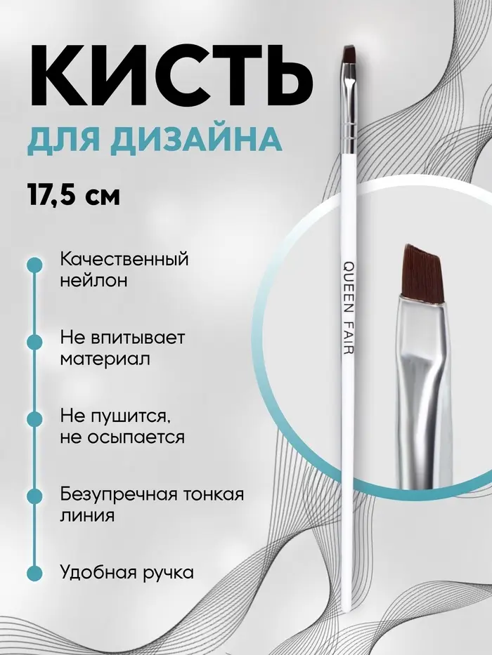 Кисть для наращивания и дизайна ногтей, скошенная, 17.5 см, 5×4 мм, белая
