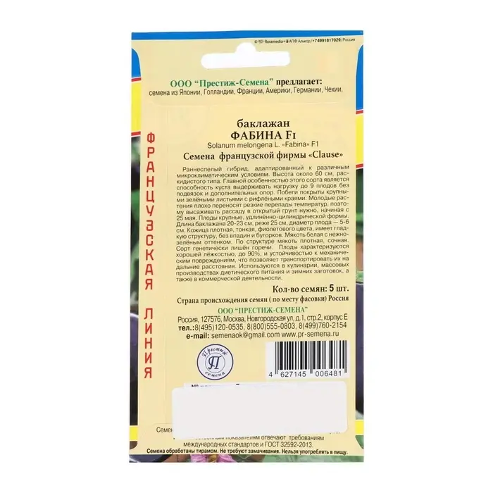 Семена Баклажан «Фабина», F1, 5 шт., «Престиж семена»
