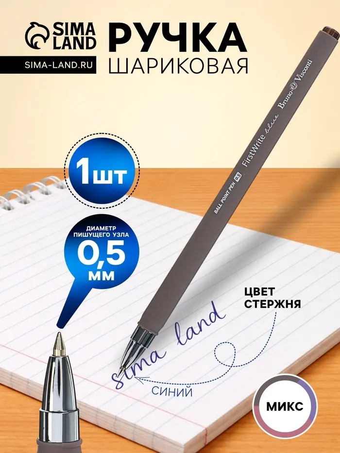 Ручка шариковая BrunoVisconti. FirstWrite. Rio, синий стержень, узел 0.5 мм, матовый корпус, МИКС