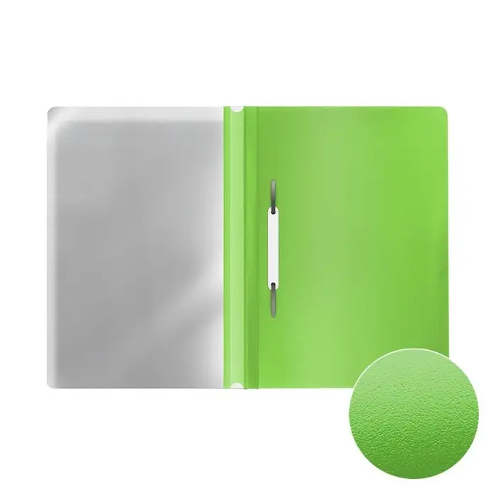 - Механизм - механический скоросшиватель; прозрачный верхний лист; усиленный пластиковый корешок с прозрачной полосой для информационной карточки.
