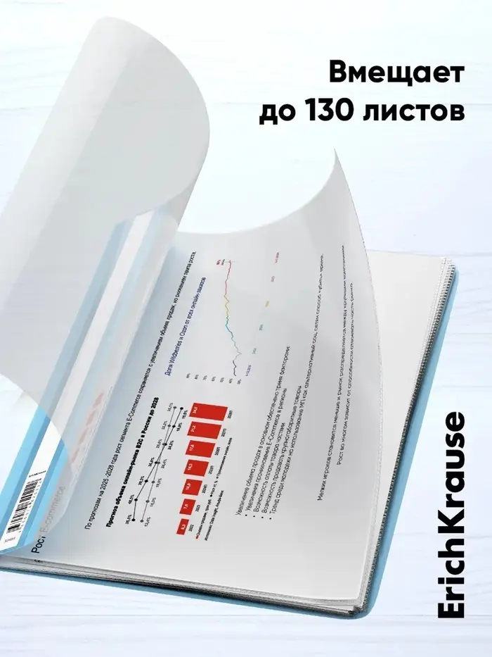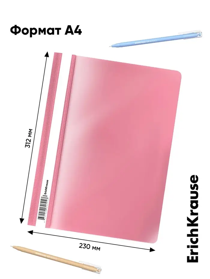 Папка-скоросшиватель с перфорацией пластиковая формата А4 из высококачественного пластика с текстурой поверхности "диагональ", на которой не видно отпечатков пальцев и мелких царапин. Предназначена для быстрого сшивания, хранения и просмотра документов. Цвет папки – ассорти: голубой, мятный, розовый, фиолетовый. Механизм - механический скоросшиватель; прозрачный верхний лист; усиленный пластиковый корешок с прозрачной полосой для информационной карточки Папка вмещает до 130 бумажных листов. Размер - 312х230 мм, толщина верхнего листа - 0.12 мм, толщина - 0.18 мм. Код и штрих-код на каждой единице товара.