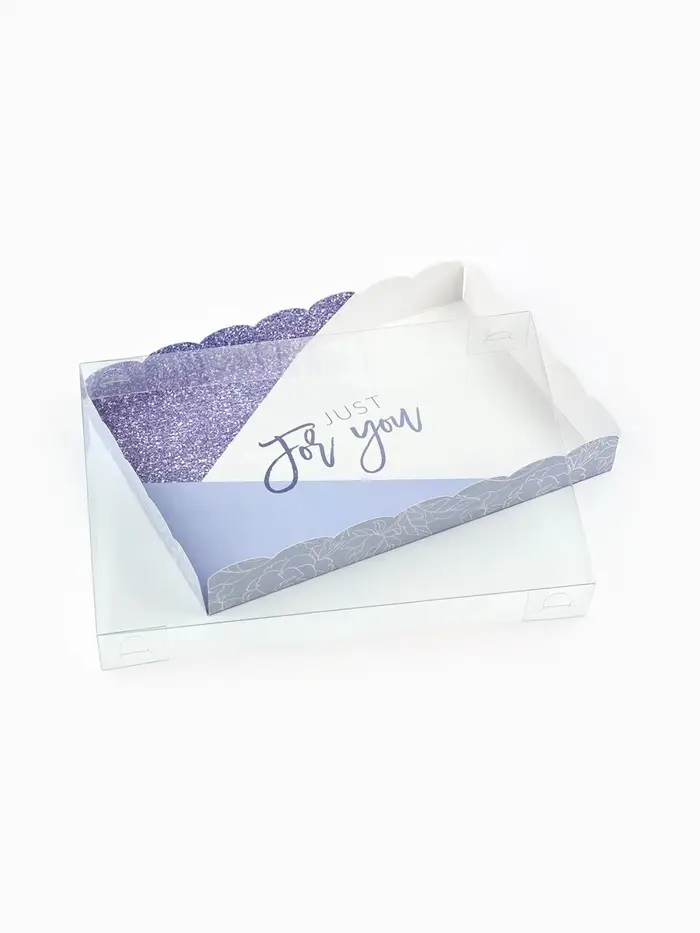Коробка для печенья, кондитерская упаковка с пластиковой крышкой, Just for you, 22×15×3 см