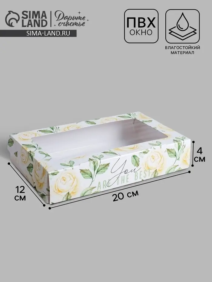 Кондитерская упаковка, коробка с ламинацией «Flowers», 20×12×4 см