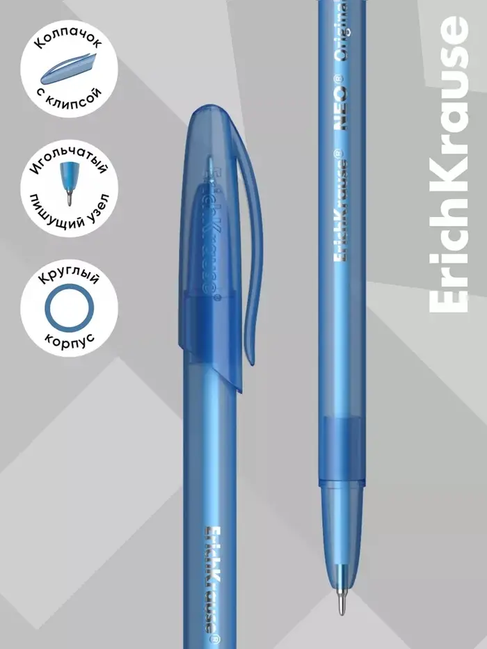 Ручка шариковая ErichKrause Neo Original, узел 0.7 мм, синяя, на масляной основе