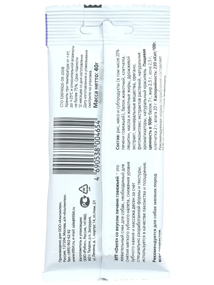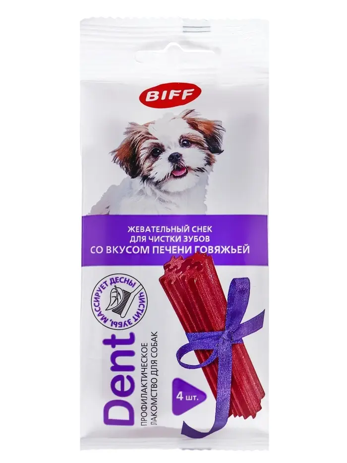 Biff DENT жевательные снеки - это профилактическое лакомство для собак, которое благодаря специально разработанной форме и текстуре, учитывает все особенности мелких пород. Рекомендованы для снятия мягкого зубного налета.