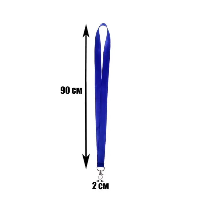 Лента для бейджа ширина-20 мм, длина-90 см с металлическим карабином, синяя