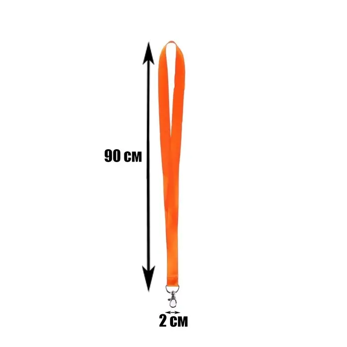 Лента для бейджа ширина-20 мм, длина-90 см с металлическим карабином, оранжевая