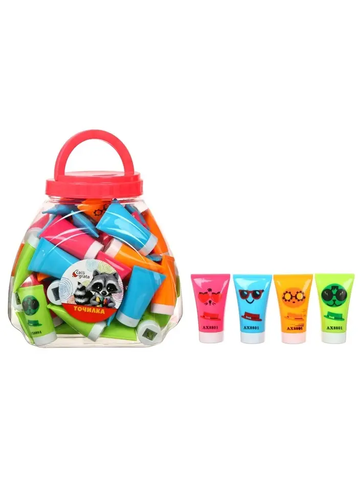 Эта точилка в форме тюбика с контейнером и ярким рисунком — весёлый и практичный спутник для школьных будней. Её узнаваемая форма вызывает ассоциации с творчеством, а скрытый контейнер помогает сохранять порядок на парте.