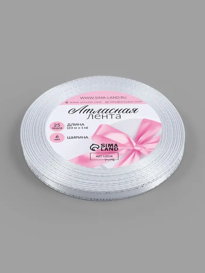 Лента атласная, с серебряным люрексом, 6 мм, 23±1 м, белая №001