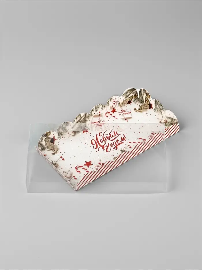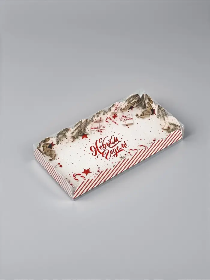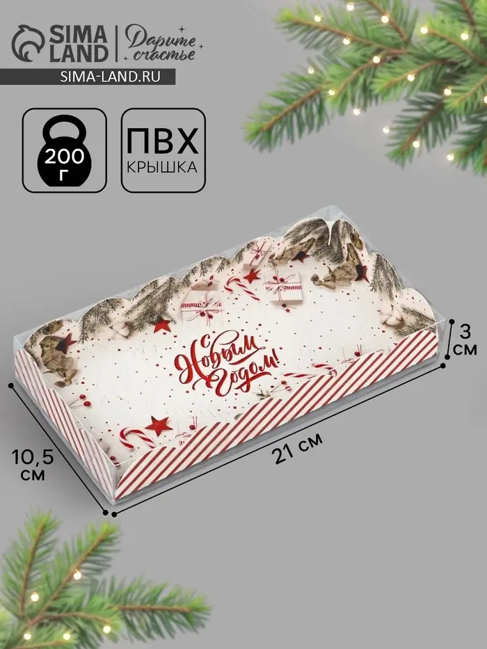 Коробка для кондитерских изделий с пластиковой крышкой «С Новым годом!», 10.5×21×3 см