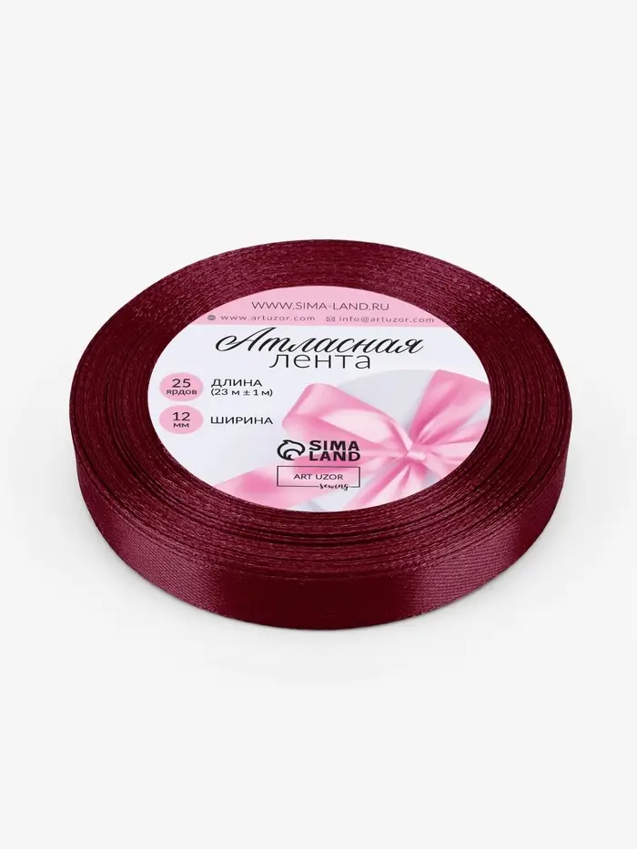 Лента атласная, 12 мм, 23±1 м, бордовая №165