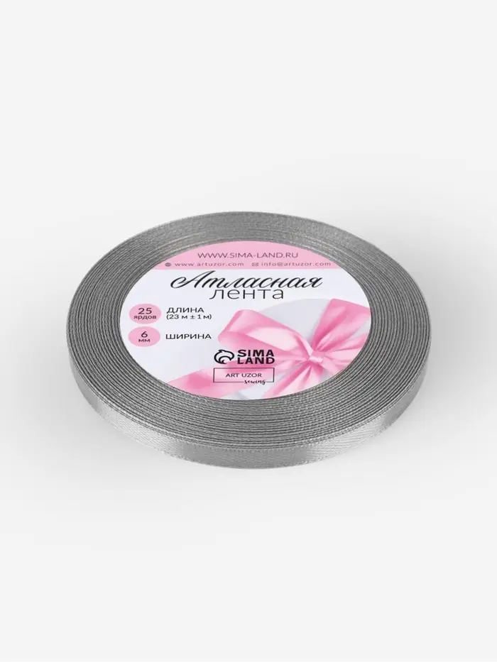 Лента атласная, 6 мм, 23±1 м, серая №59