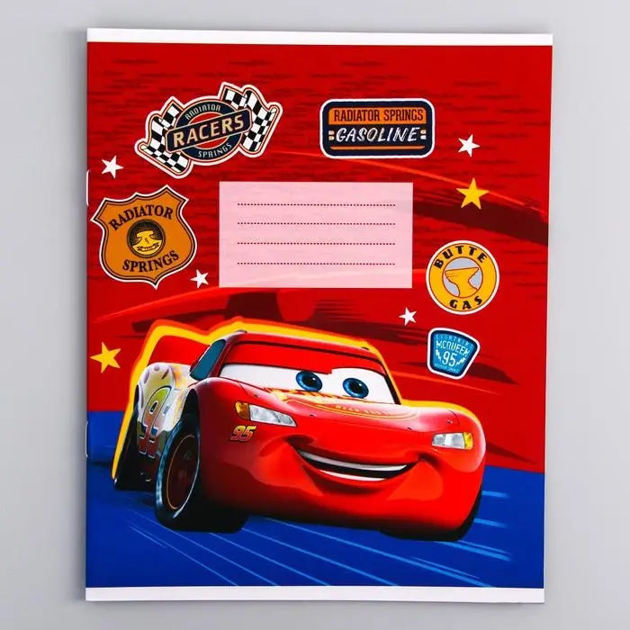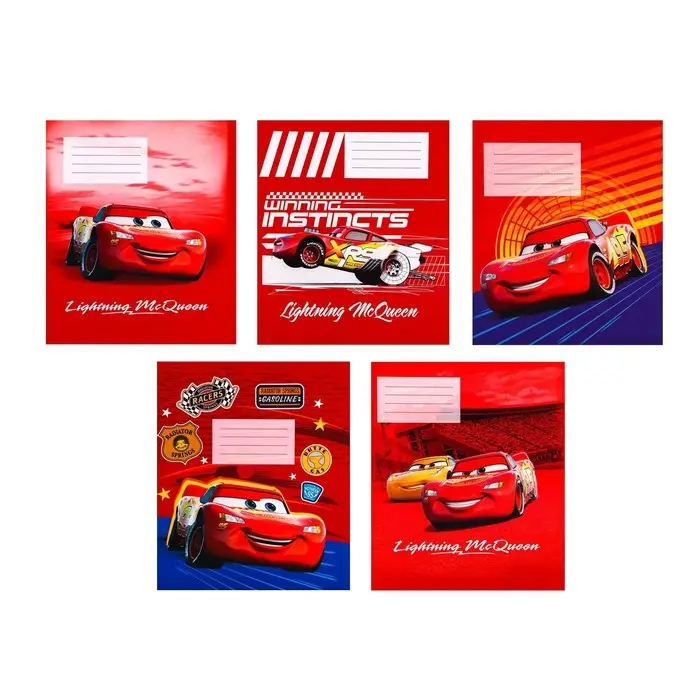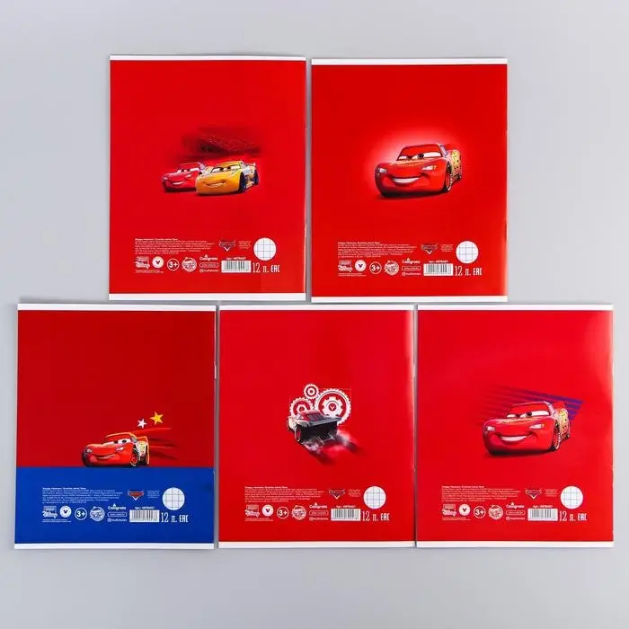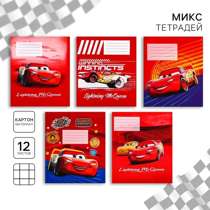 Тетрадь в клетку 12 листов, 5 видов МИКС, обложка мелованный картон, «Тачки»