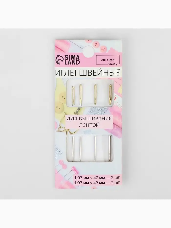 Иглы для вышивания лентой, с золотым ушком, d=1.07 мм, 4.7-4.9 см, набор 4 шт.