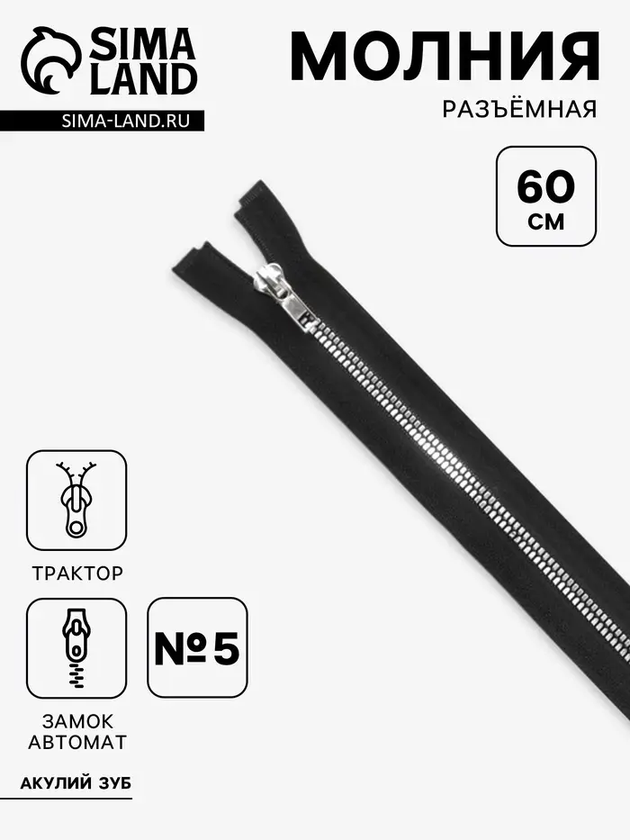 Молния «Трактор», №5, разъёмная, замок автомат, 60 см, чёрная, белая