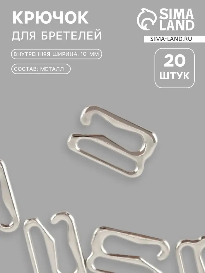 Крючок для бретелей, металлический, 10 мм, 20 шт., цвет серебряный