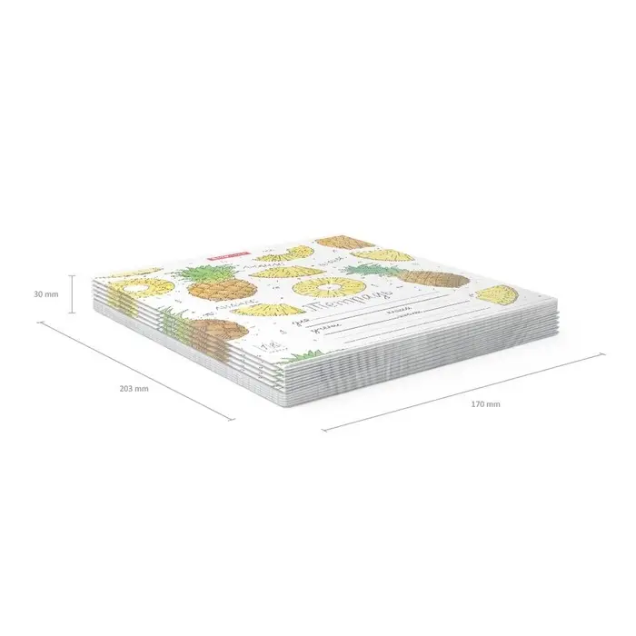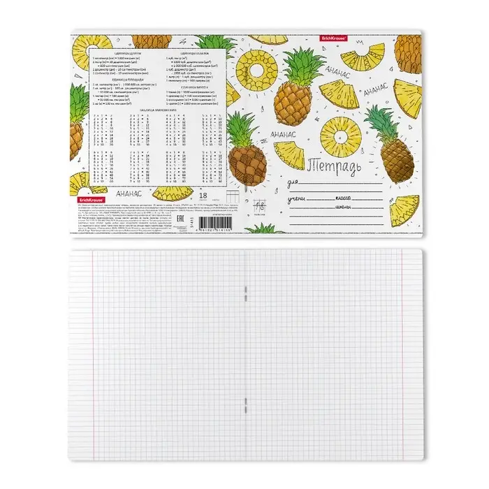 Тетрадь школьная ученическая формата А5+ (170 х 203 мм). Обложка из высококачественного мелованного картона плотностью 180 г/м2. В блоке 18 листов в клетку с полями. Бумага офсетная плотностью 60 г/м2. Цвет линовки - синий. Скругленные уголки обложки и блока. Тип скрепления - скоба. Тетради одного дизайна упакованы в термоусадочную пленку по 10 штук. Товар поставляется в нескольких вариантах дизайна без возможности выбора.