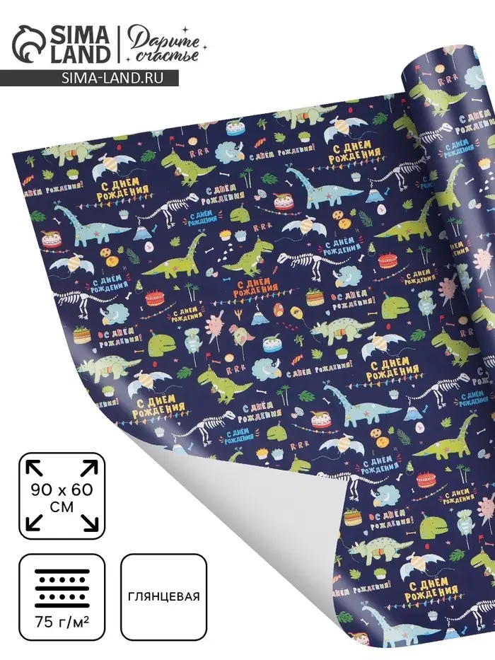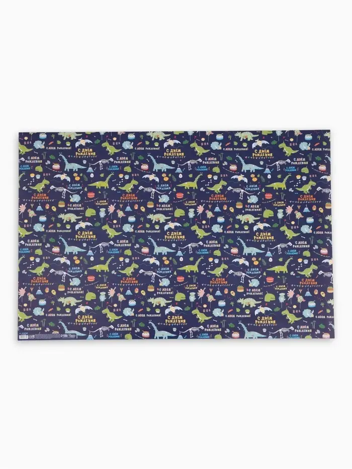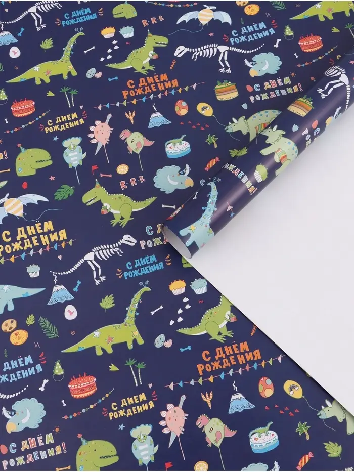 Бумага упаковочная «С днём рождения! Динозавры», глянец, 60×90 см