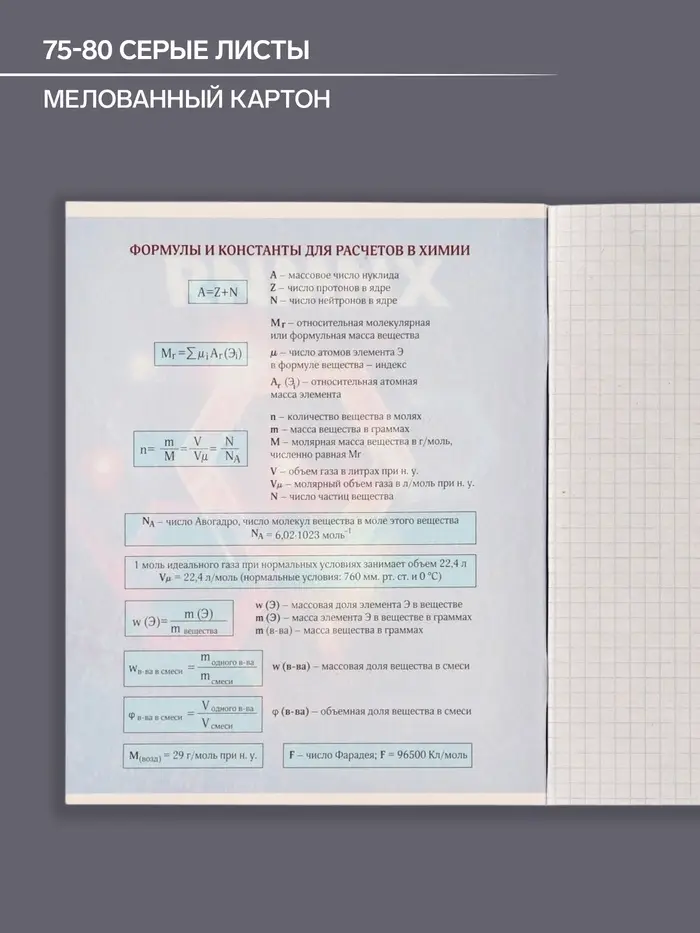 Тетрадь предметная 48 листов в клетку Calligrata «3D. Химия», серые листы