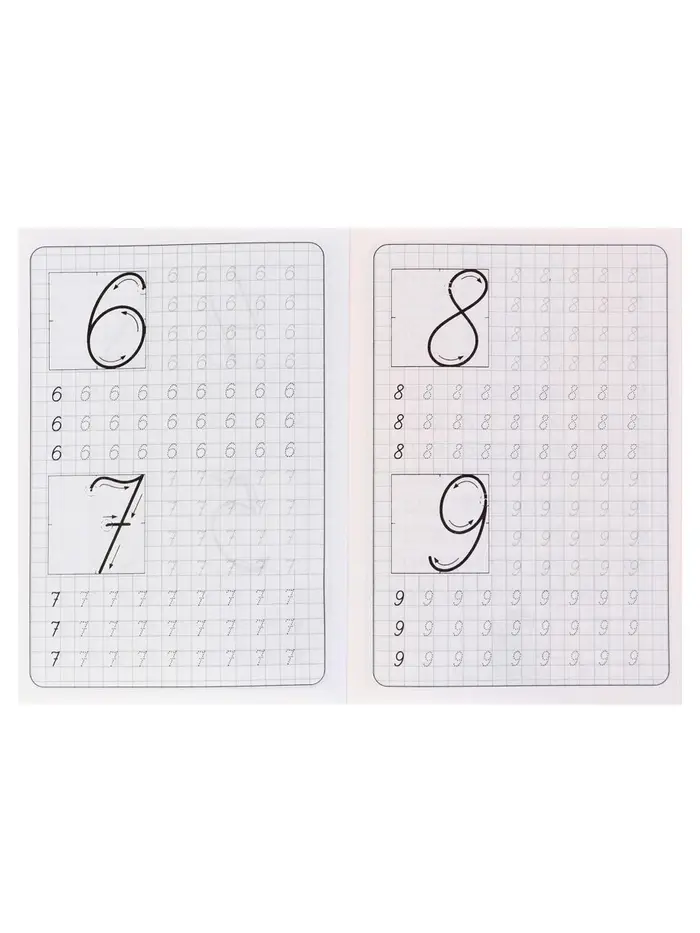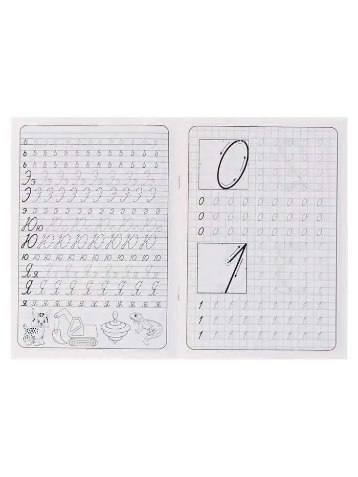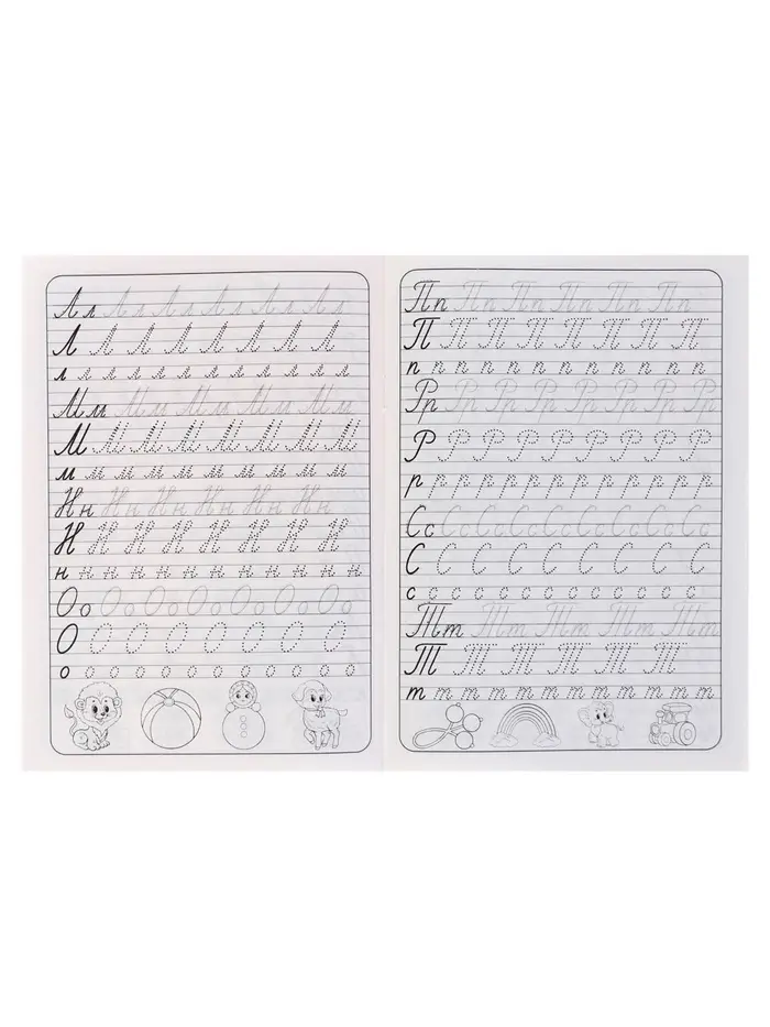 - Страницы с косой линейкой и клеткой помогают ребёнку ориентироваться при написании букв и цифр.