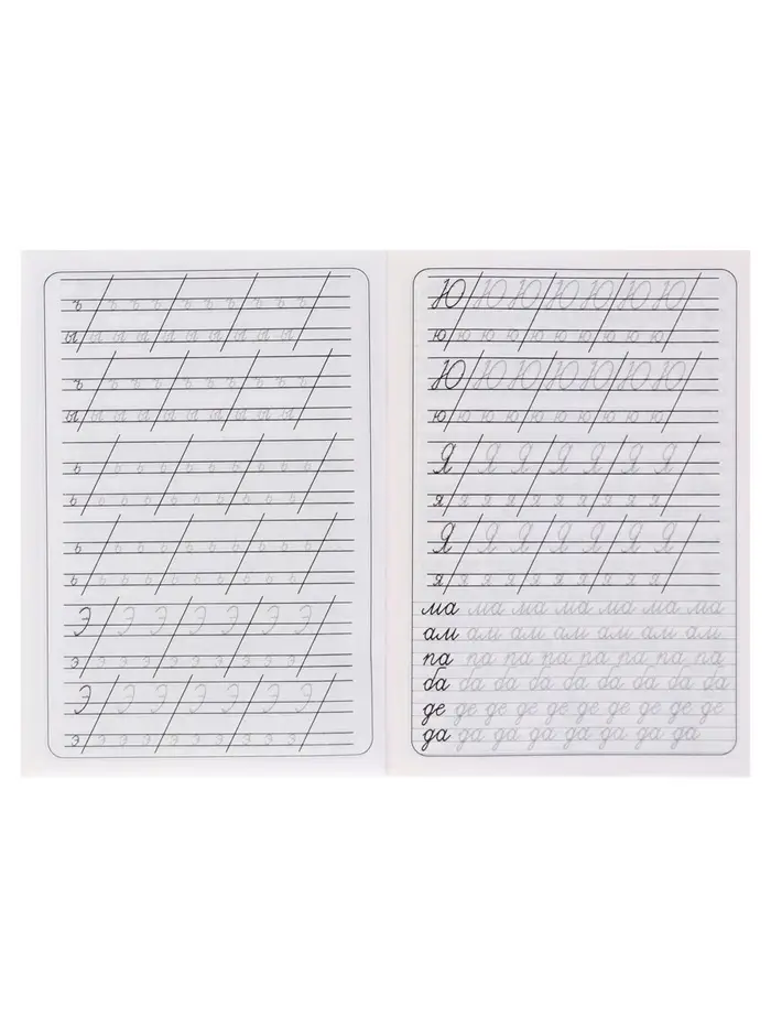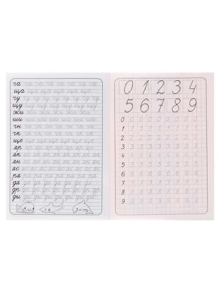 - Страницы с узкой линейкой и клеткой помогают ребёнку ориентироваться при написании букв, цифр и слогов.