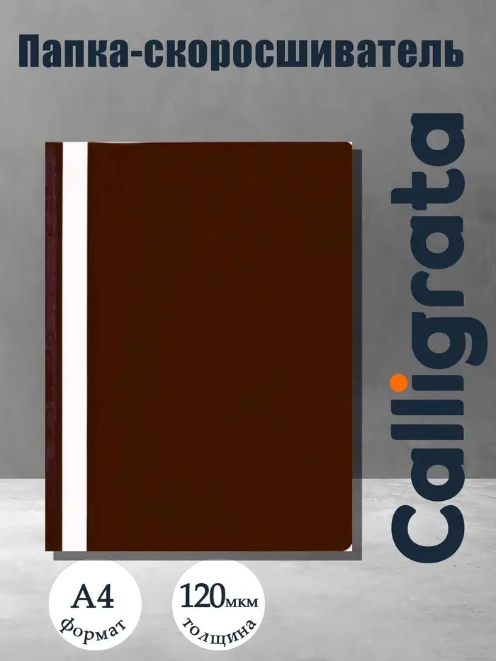 Папка-скоросшиватель Calligrata, А4, 120 мкм, коричневая, прозрачный верх