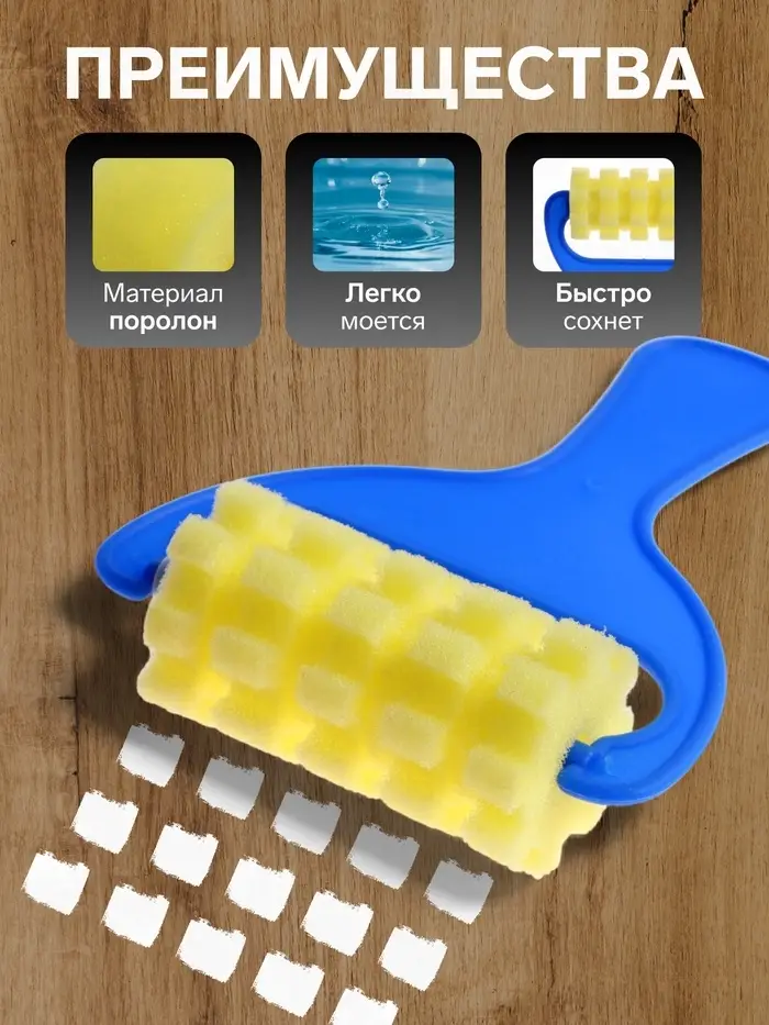 - Четкий геометрический рисунок: Поролоновая основа сохраняет форму углов при длительном использовании. Квадраты получаются с ровными границами без расплывшихся контуров.