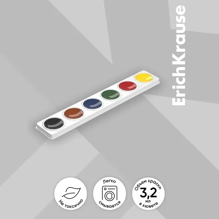 Акварель 6 цветов, ErichKrause, без кисти, картон, европодвес (облегченная упаковка)