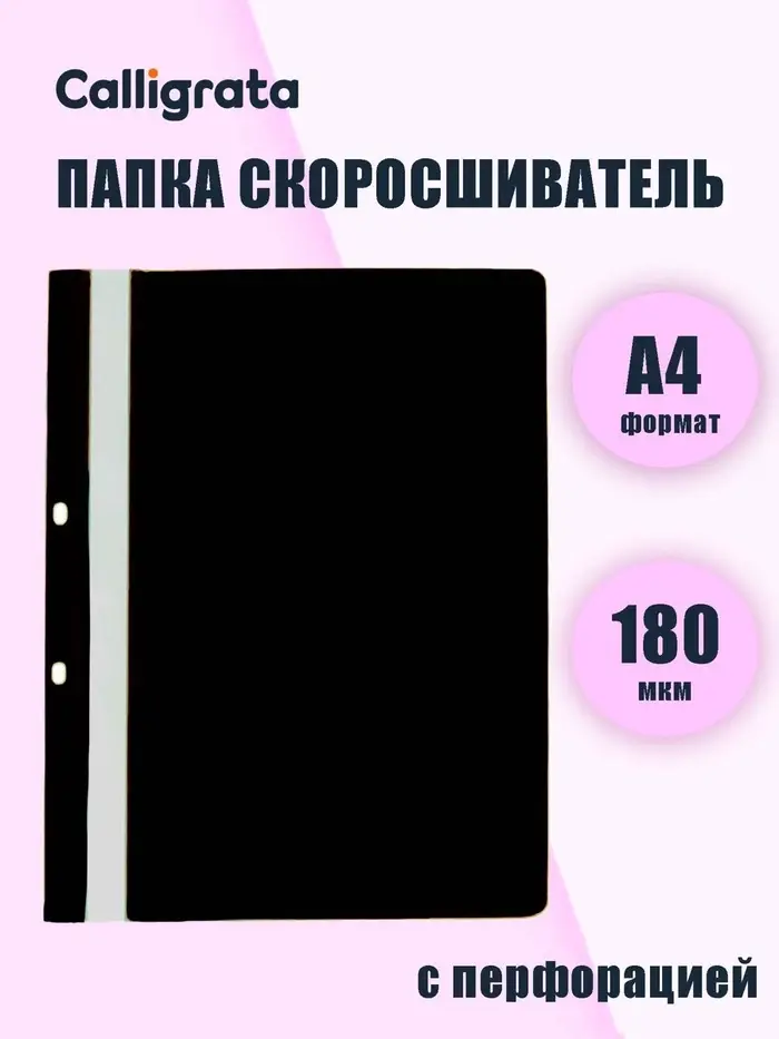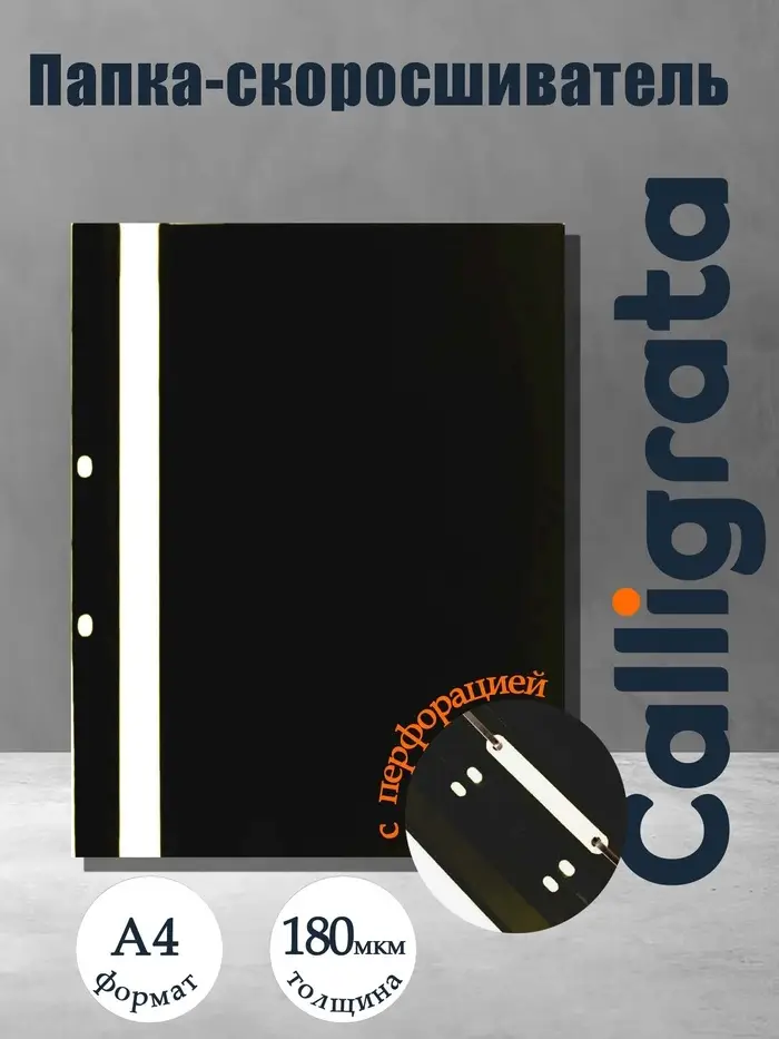 Папка-скоросшиватель с перфорацией Calligrata, А4, 180 мкм, черная с прозр.верхом