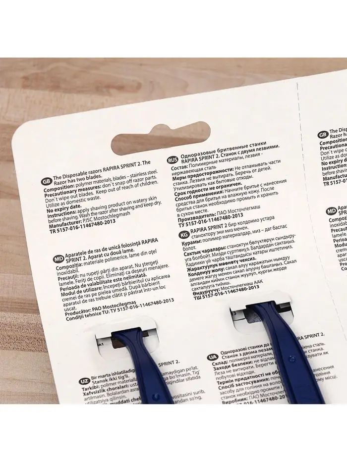 Одноразовые бритвы Rapira Sprint изготовлены из высококачественной стали. Бреющая головка обеспечивает комфортное бритье благодаря двум последовательно расположенным лезвиям, зафиксированным под удобным углом наклона.
