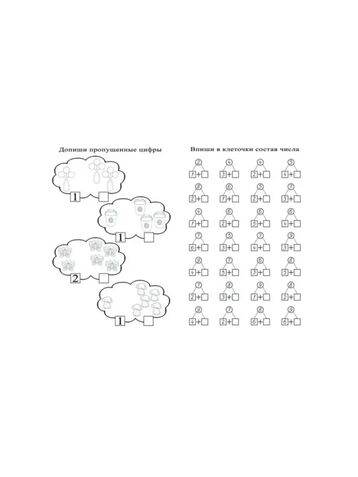 - 12 страниц с заданиями, направленными на изучение состава чисел и развитие навыков счёта.