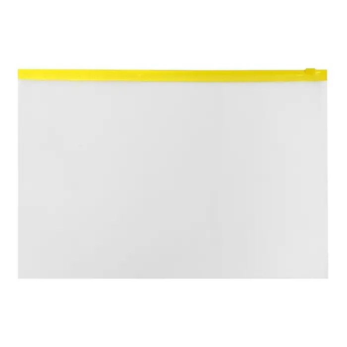 Папка-конверт на ZIP-молнии A4, 150 мкм, Calligrata, прозрачная, жёлтая молния