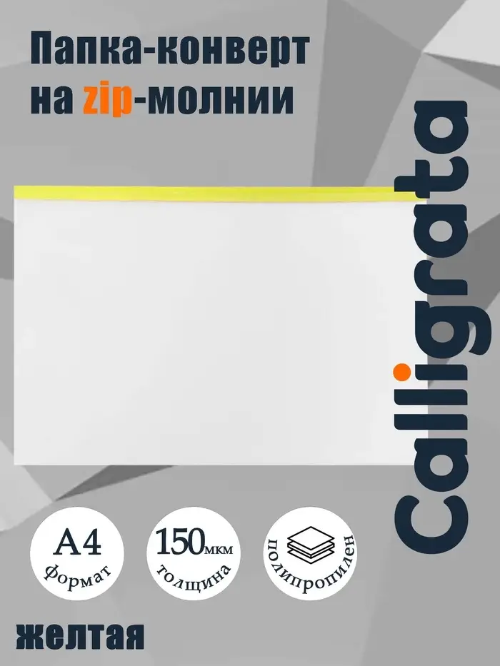 Папка-конверт на молнии Calligrata идеально подойдет для хранения и транспортировки документов. Изготовлена из прочного прозрачного пластика толщиной 150 мкм с гладкой фактурой. Формат А4 (333х230 мм). Герметичная застежка-зиплок защищает документы от механических повреждений, а также пыли и влаги. Цвет молнии – жёлтый.