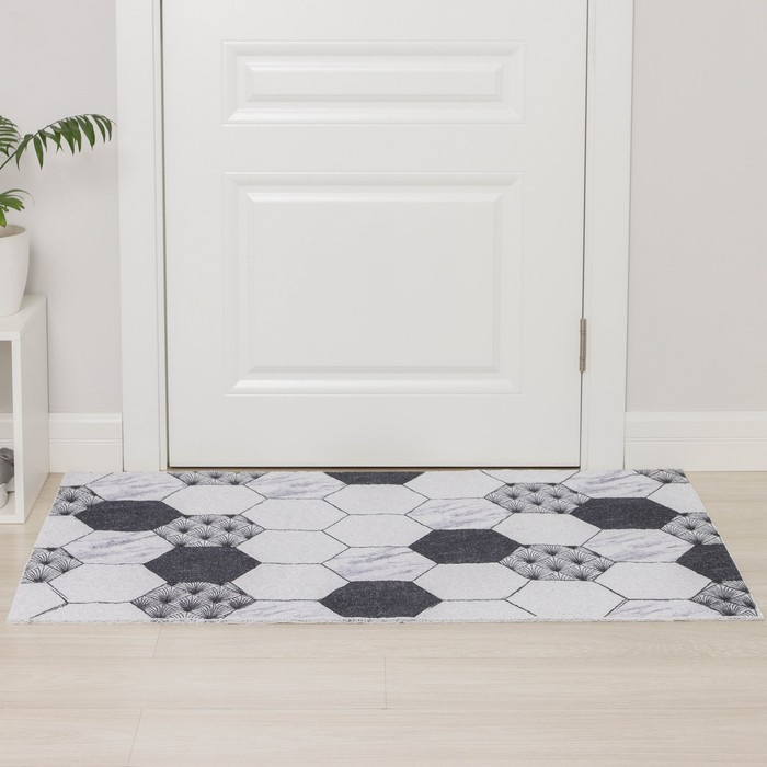 Коврик придверный грязезащитный Доляна «Мрамор», вырезной, 60×90 см, цвет серый