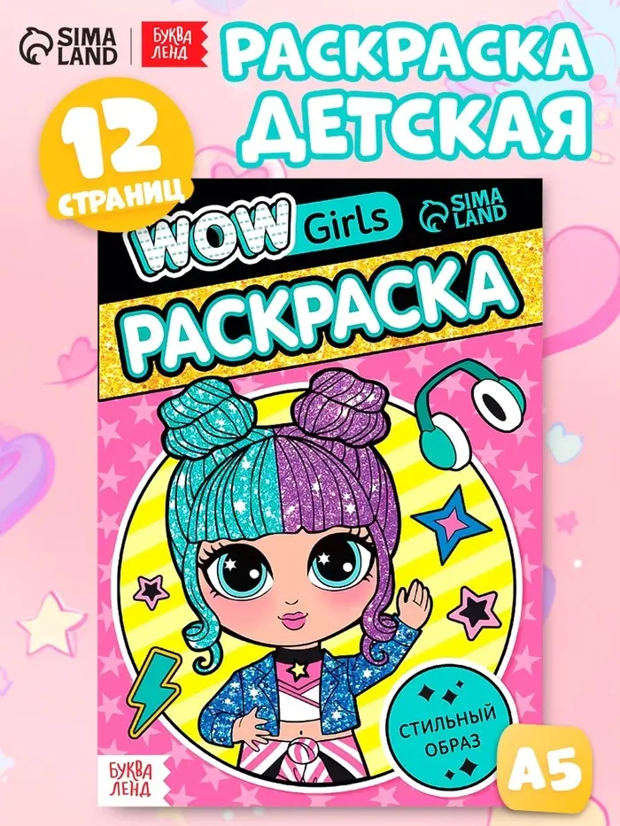 Раскраска «WOW Girls. Стильный образ», формат А5, 12 стр.