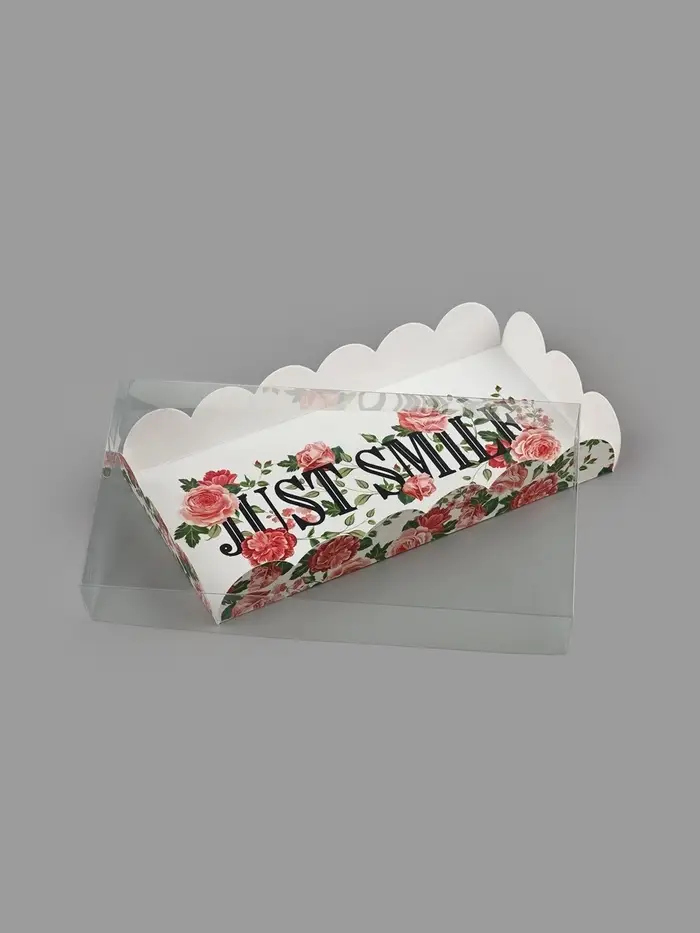 Коробка для печенья, кондитерская упаковка с пластиковой крышкой, голография, Just smile, 10.5×21×3 см