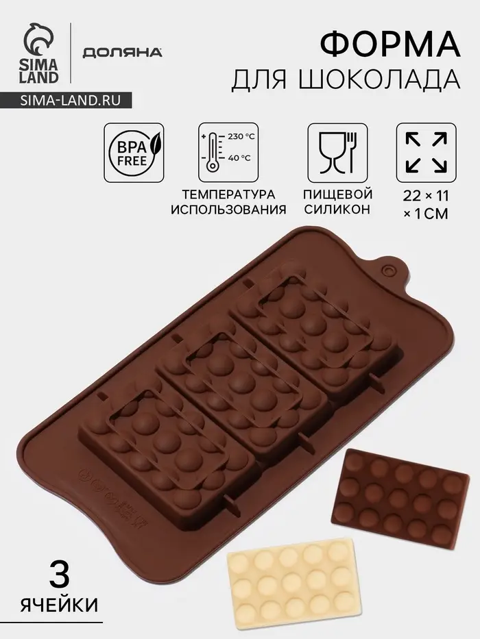 Форма для шоколада Доляна «Мини-шоколадки», силикон, 22×11×1 см, 3 ячейки, коричневая