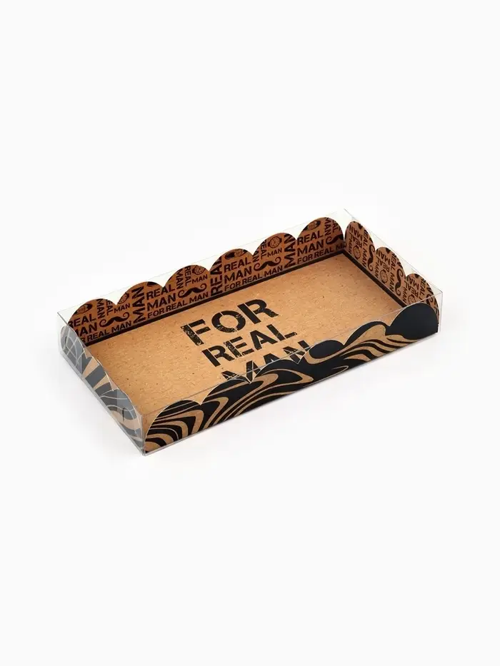 Коробка для печенья, кондитерская упаковка с пластиковой крышкой, «Настоящему мужчине», 10.5×21×3 см