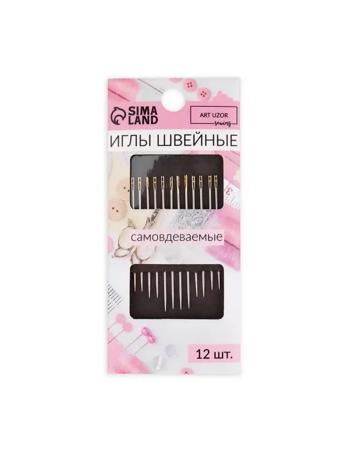 Иглы швейные Арт Узор, с золотым ушком, самовдеваемые, d=0.78 мм, 3.5-4.2 см, набор 12 шт.