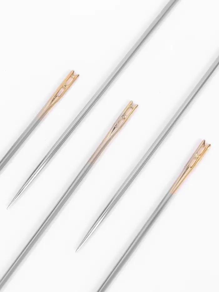 Иглы созданы для ежедневного шитья: от пришивания пуговиц до ремонта постельного белья. Они особенно удобны, если вам нужно быстро сменить нить в процессе работы или если зрение уже не то, что в молодости. Комплект пригодится и в дорожной швейной коробке — золотое покрытие ушка защищает от коррозии.