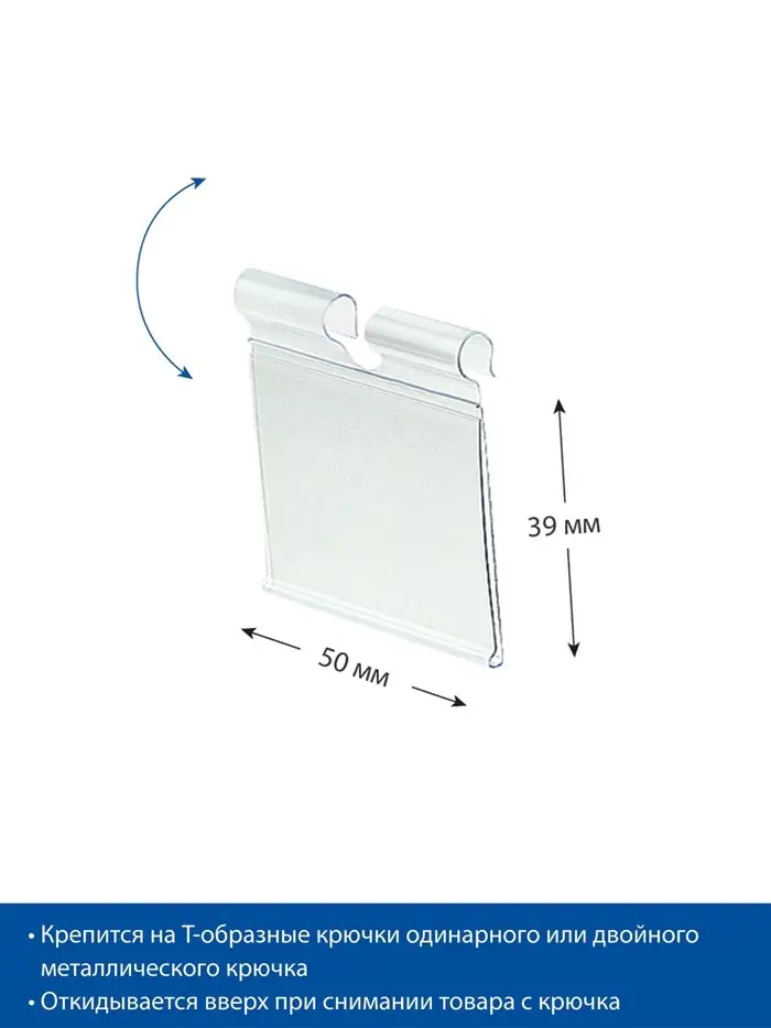 Ценникодержатель на крючок откидной 3.9×5 см, цвет прозрачный