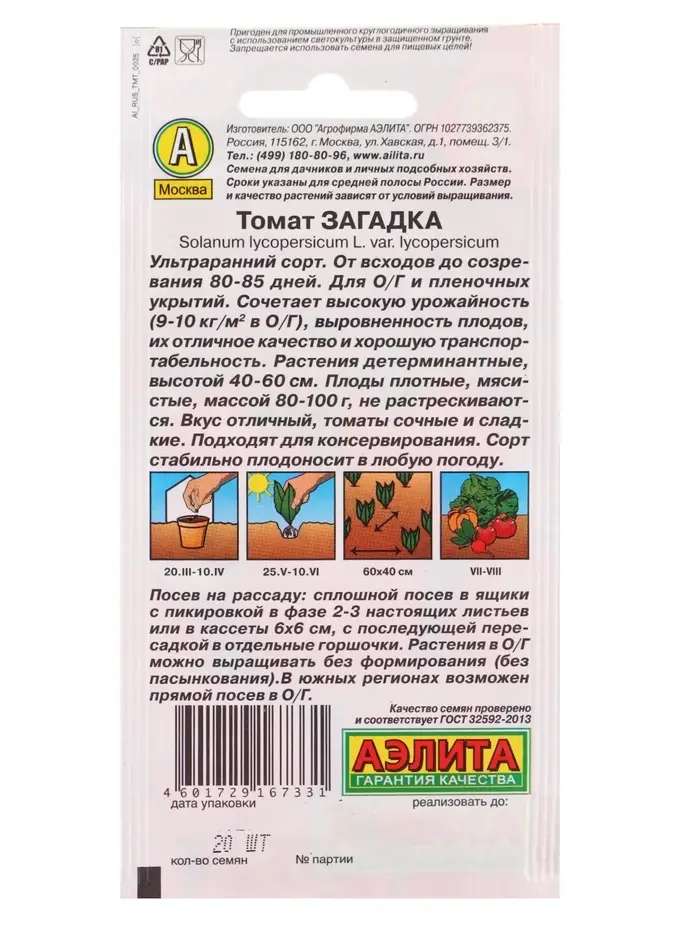 Семена Томат «Загадка», 20 шт., «АЭЛИТА»