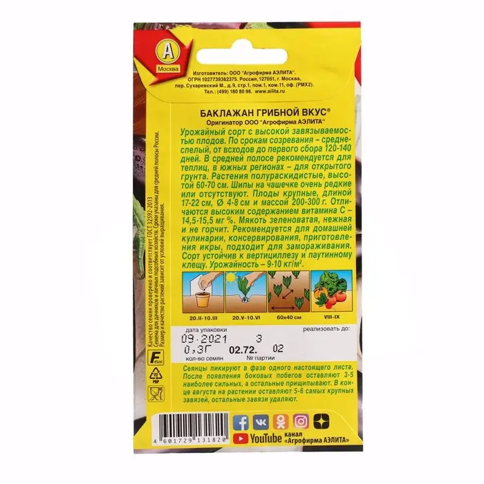 Семена Баклажан «Грибной вкус», 0.1 г, «Аэлита»