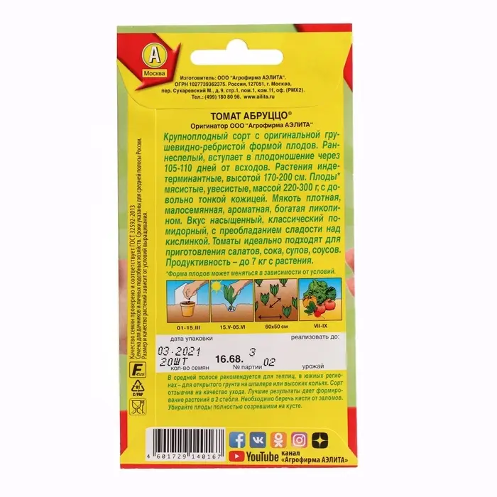 Семена Томат «Абруццо», индетерминантный, высокорослый, 20 шт., «АЭЛИТА»