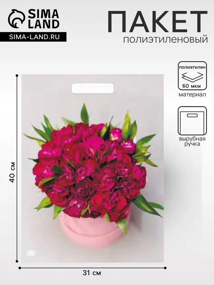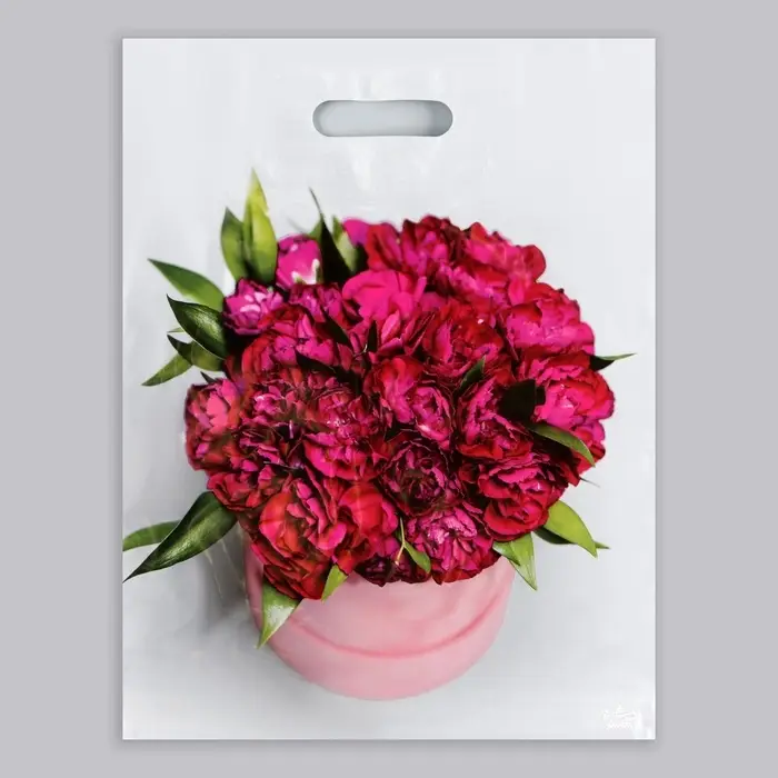 Пакет «Букет пионов», полиэтиленовый, с вырубной ручкой, 31×40 см, 60 мкм